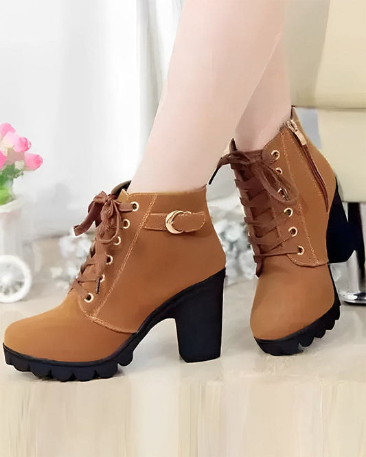 Veterschoenen - Dames - Pu Leer - Dikke Hak Schoenen - Luna