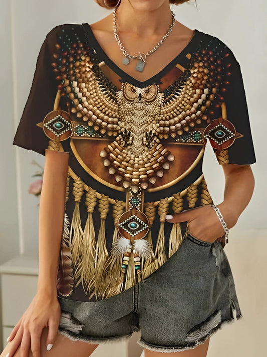 Dames - Losse Fit T-shirt - Boho Tribal Print - Casual Mode - YSOLT EDGE