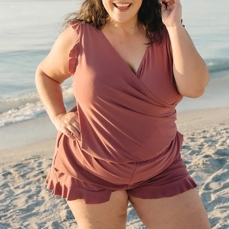 De aangesloten short biedt net wat meer bedekking en bewegingsvrijheid, zonder dat het inlevert op elegantie. Perfect voor actieve zomerdagen.