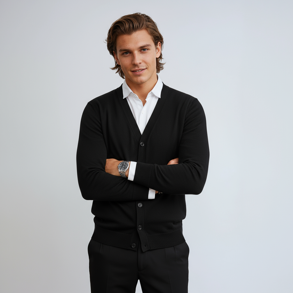 - Gemakkelijke sluiting en tijdloze details: knopen en V‑hals zorgen voor een hoogwaardige, klassieke uitstraling.